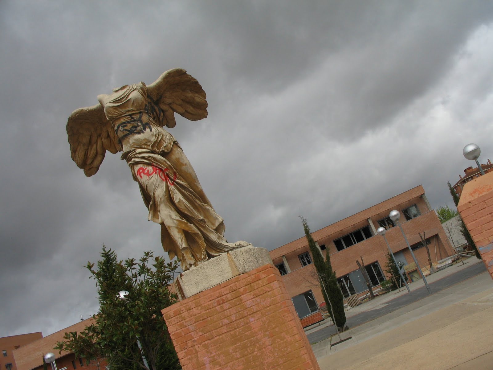 La escultura está en un entorno descuidado, lo que incita a los vándalos a tratarla del mismo modo que a todo lo que la rodea, no iba a ser una excepción.